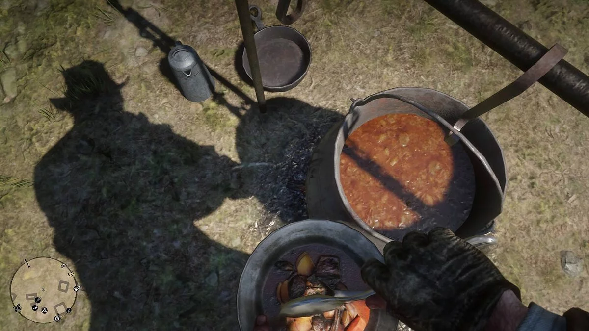 Note that next to Pearson's wagon, there's a pot on the fire where you can grab a free bite once a day and, more importantly — drink a cup of coffee. Coffee, in turn, restores the «Dead Eye» ability. Don't forget to take advantage of this when you're about to go on a mission.