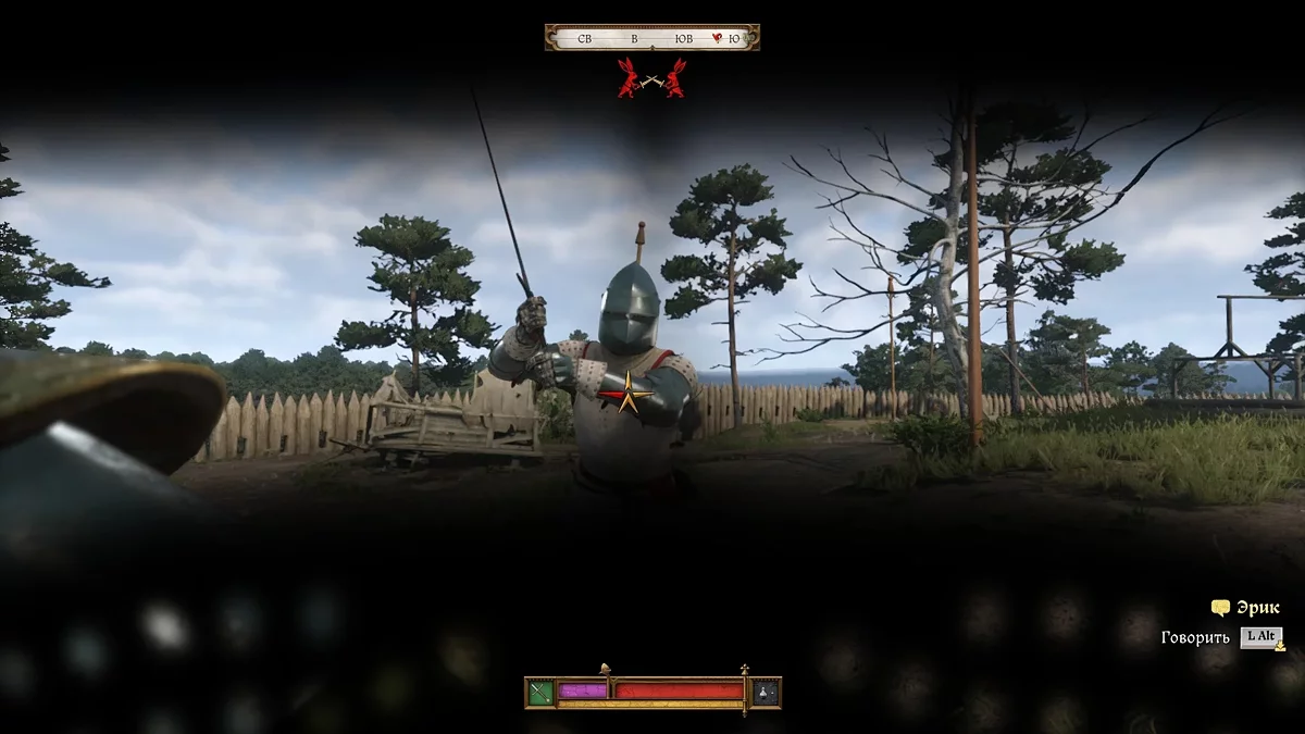 Accepting the challenge, pass the skill check "Coercion". This will slightly simplify the battle. But don't expect an easy walk, as the fight with him is a real challenge for KCD2 players, as Erik is the strongest enemy in the game. Pre-use potions to increase stamina and restore health. Also equip armor with head protection.