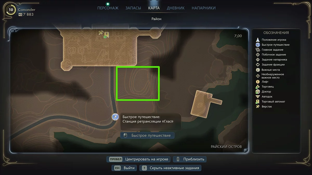 Os sabotadores estão em uma pequena localização perto da Glass Station. Portanto, primeiro você precisa chegar à outra parte da ilha. Existem muitas maneiras de atravessar para o norte. Neste caso, é melhor se esgueirar pelo naufrágio perto de Westport. Use as botas de salto duplo encontradas no Sacred Sweet Spire Grove a oeste de Fairfield. Outras maneiras de alcançar a base do Protetorado são descritas em detalhes na seção relevante do guia de walkthrough do jogo.
