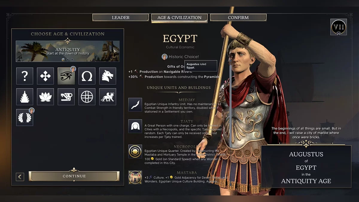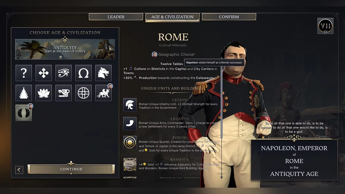 The main change, something the developers talked about even before the release, is that there are now only three eras: Antiquity, the Age of Discovery, and Modernity. The rulers’ bonuses may vary from era to era. Some start with a massive boost but are weaker in the later eras, while others are the opposite.