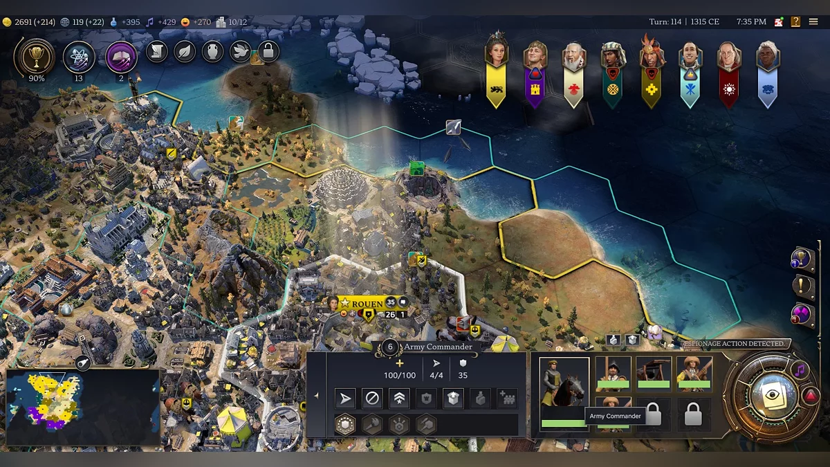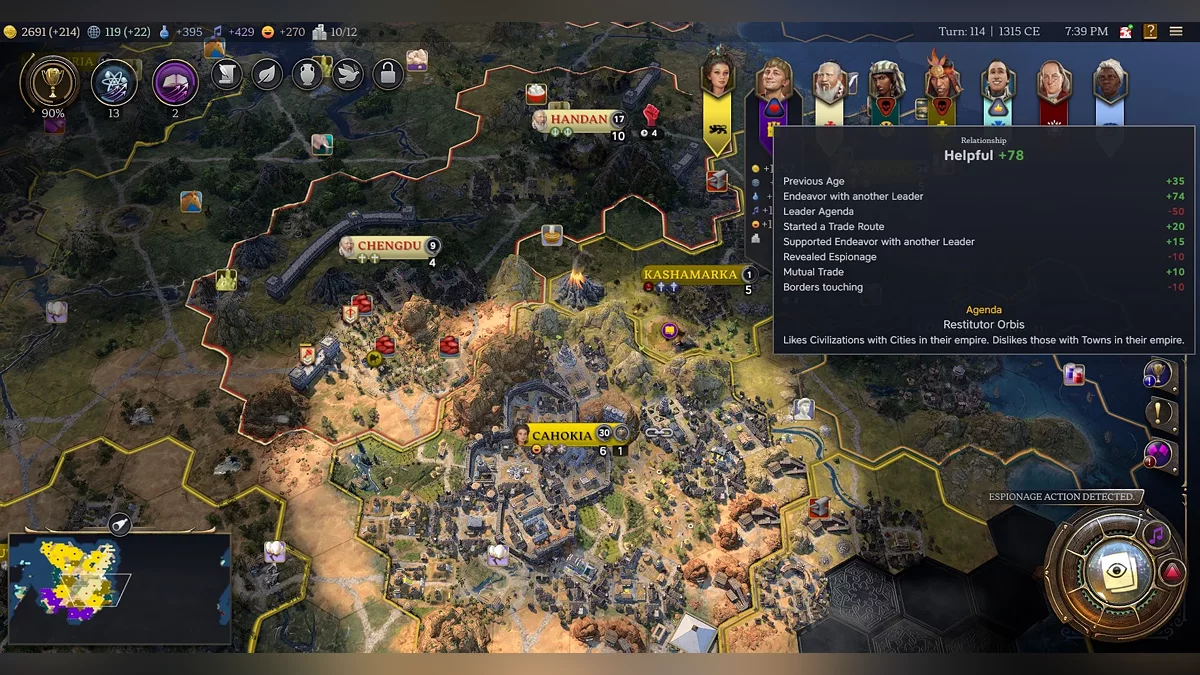 The number of settlements you can control is now limited, somewhat like Stellaris or Crusader Kings. If you exceed the limit, your country will suffer severe debuffs to its mood. This could easily lead to rebellions. Fortunately, cities won’t be lost after three turns of low loyalty like in the sixth game, but people can still switch to other rulers. As a preview, a city belonging to an African ruler joined us this way. But now, the system is tied to mood and rarely reaches absurd levels.