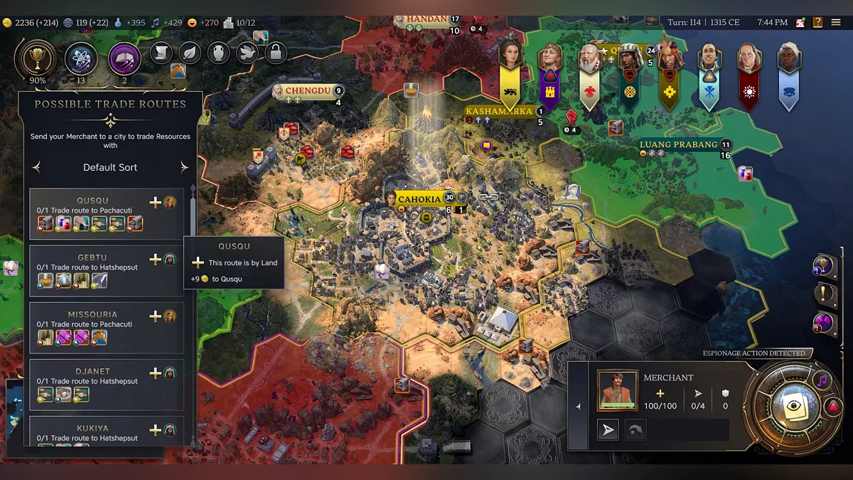 Now, trade routes need to be launched to import resources from other civilizations. The more resources, the better: they can boost morale, production, food, and culture. The key is making sure there are tiles in the cities for these resources.