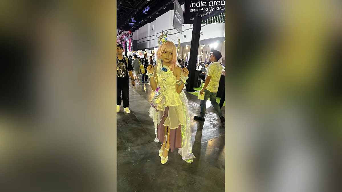 Ainda não há cosplay—o público fantasiado aparecerá nos corredores do centro de convenções amanhã. Até agora, avistamos apenas um visual marcante.