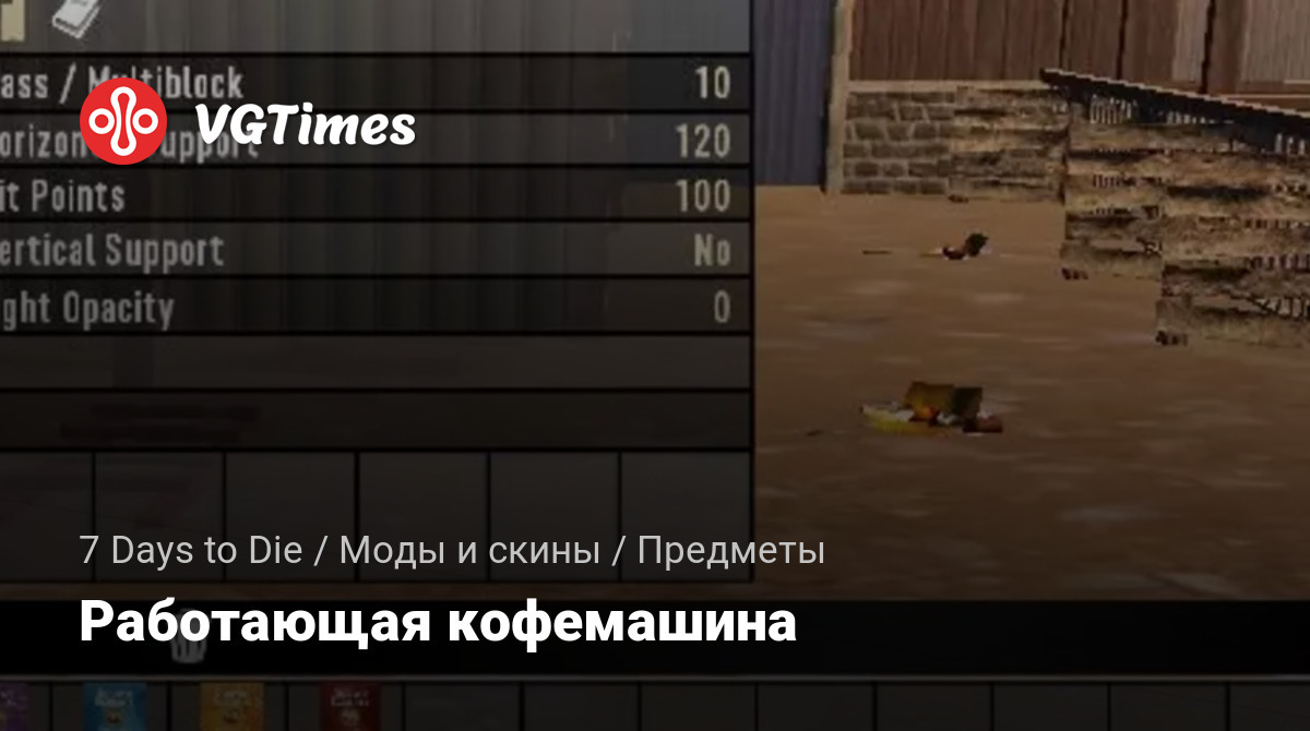 Этот мод добавит в игру работающую кофемашину. Что может быть лучше, чем выпить чашечку горячего капучино, после обезглавливания очередного зомби. Для установки просто распакуйте скачанный архив в папку mods.