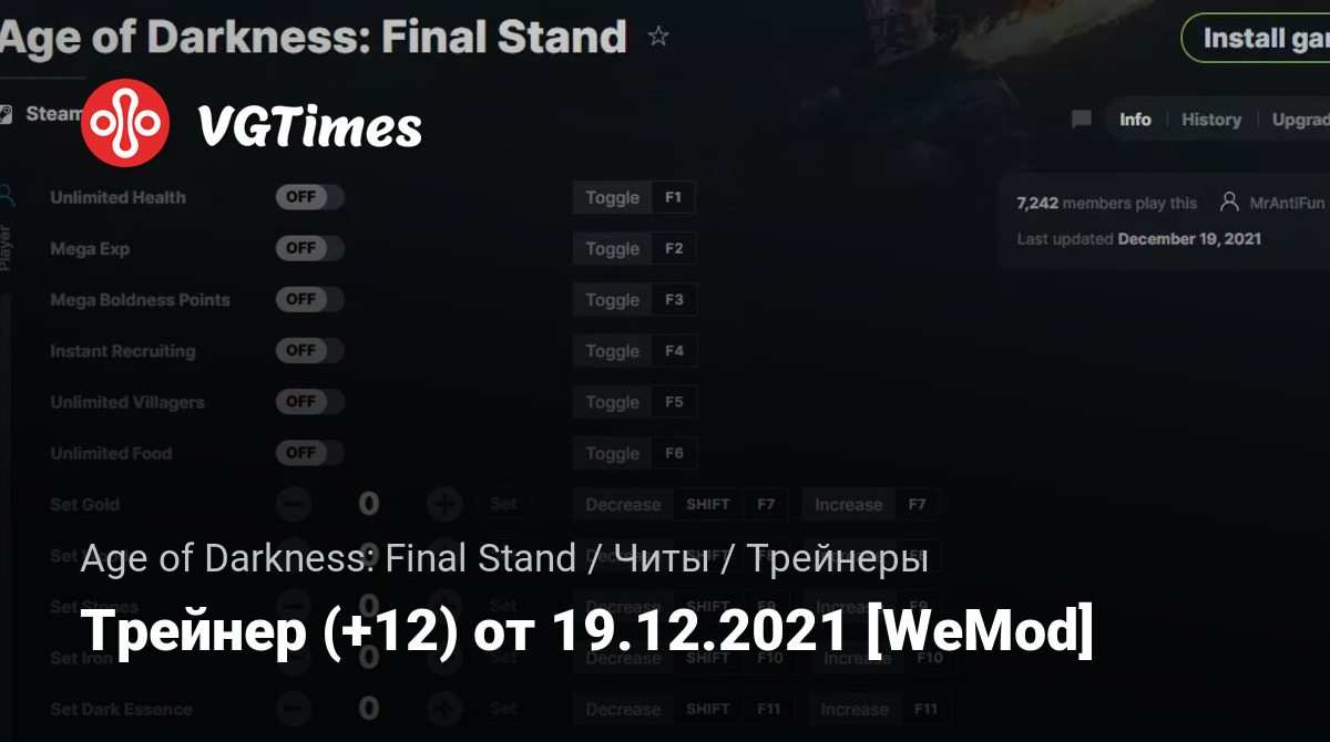 Для использования трейнера необходима установка системы WeMod (требуется онлайн подключение).