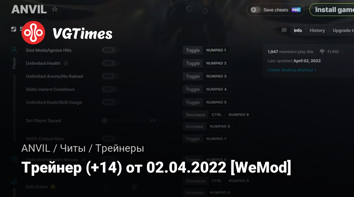 Для использования трейнера необходима установка системы WeMod (требуется онлайн подключение).