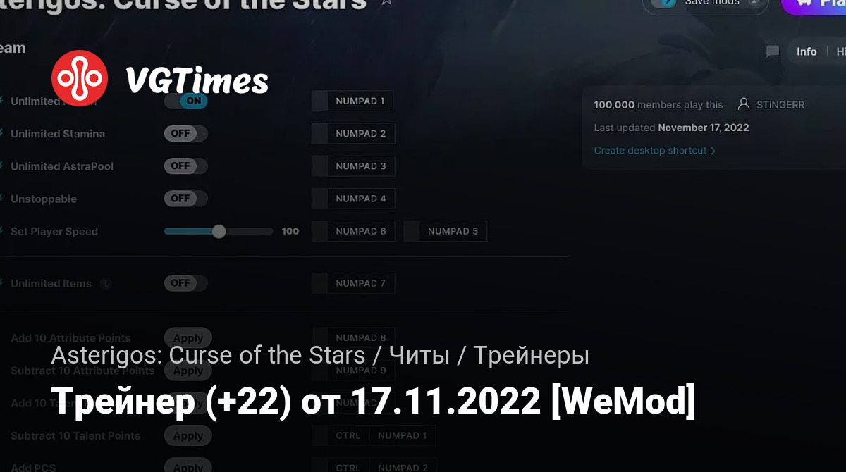 • Asterigos: Curse of the Stars — Трейнер (+22) от 17.11.2022 [WeMod]
