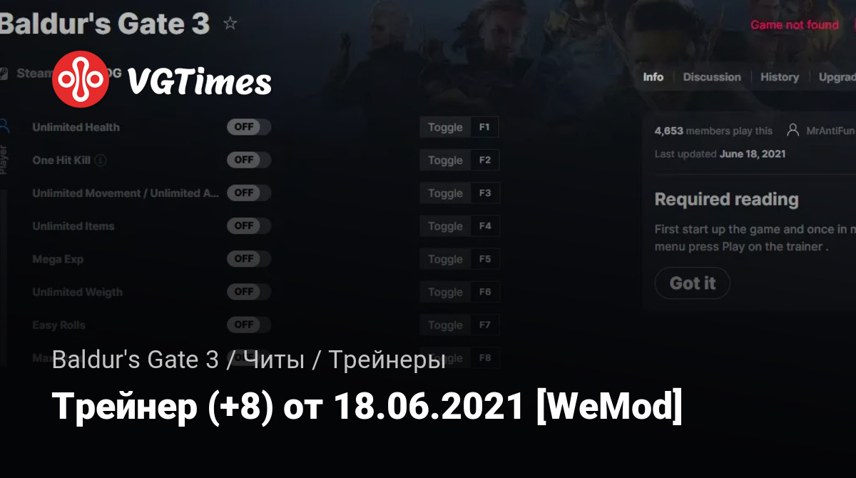 Трейнер (+8) от 18.06.2021 [WeMod]
