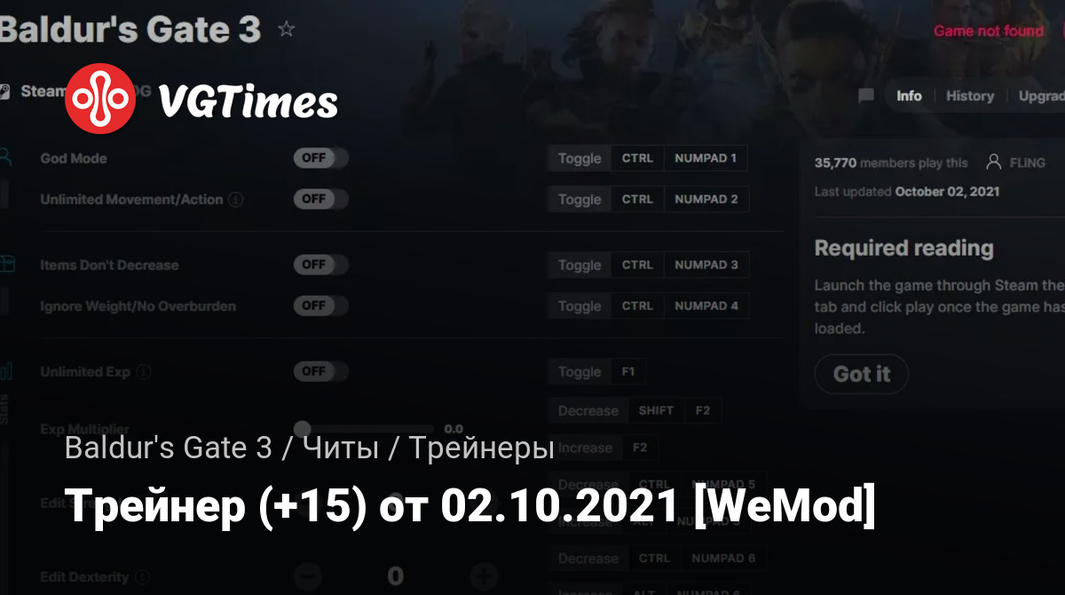 • Baldur's Gate 3 — Трейнер (+15) от 02.10.2021 [WeMod]