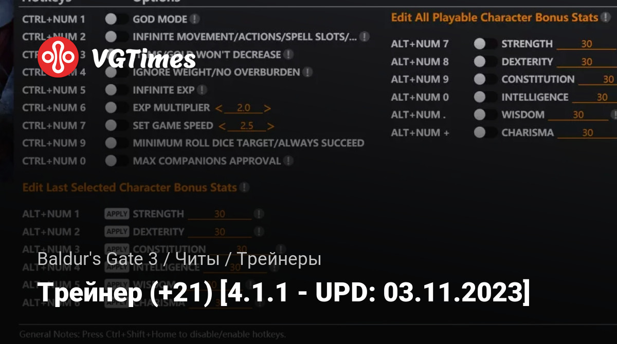 Jogos Baldur's Gate 3 Arquivos Treinadores Трейнер (+21) [4.1.1 - UPD: 03.11.2023]
