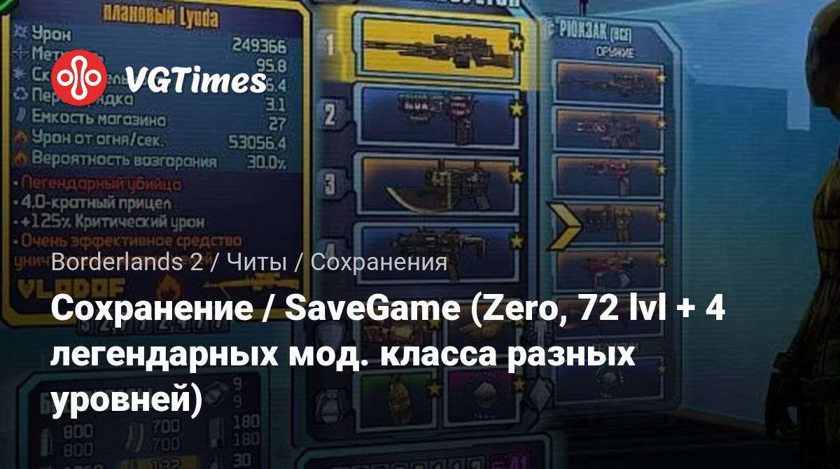 Сохранение / SaveGame (Zero, 72 lvl + 4 легендарных мод. класса разных уровней)