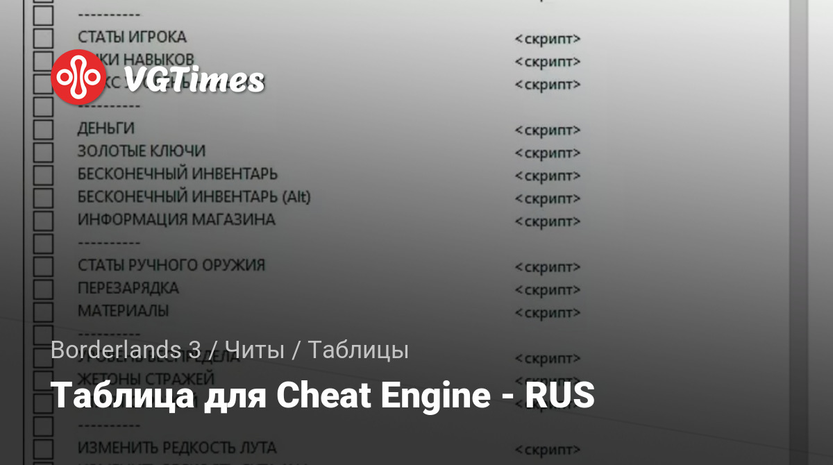 • Borderlands 3 — Таблица для Cheat Engine - RUS