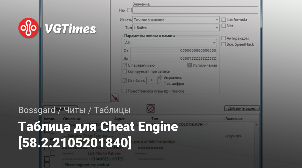 Таблица для Cheat Engine [58.2.2105201840]
