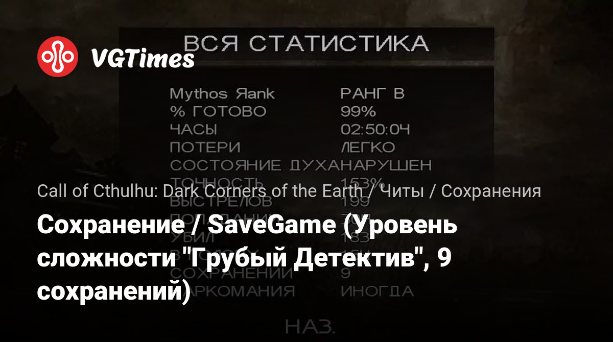 Сохранение / SaveGame (Уровень сложности "Грубый Детектив", 9 сохранений)