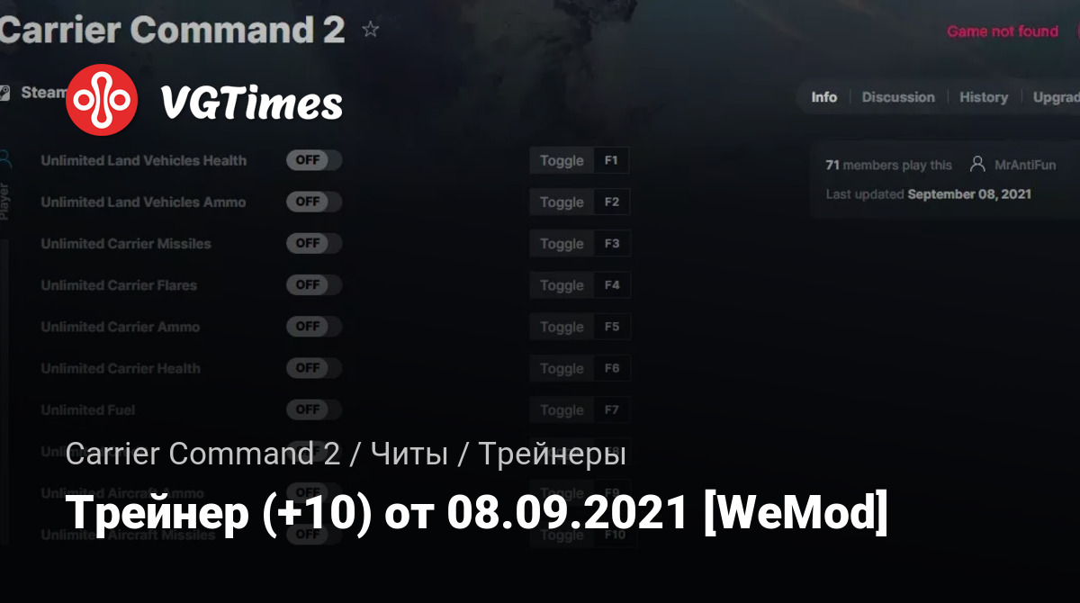 • Carrier Command 2 — Трейнер (+10) от 08.09.2021 [WeMod]