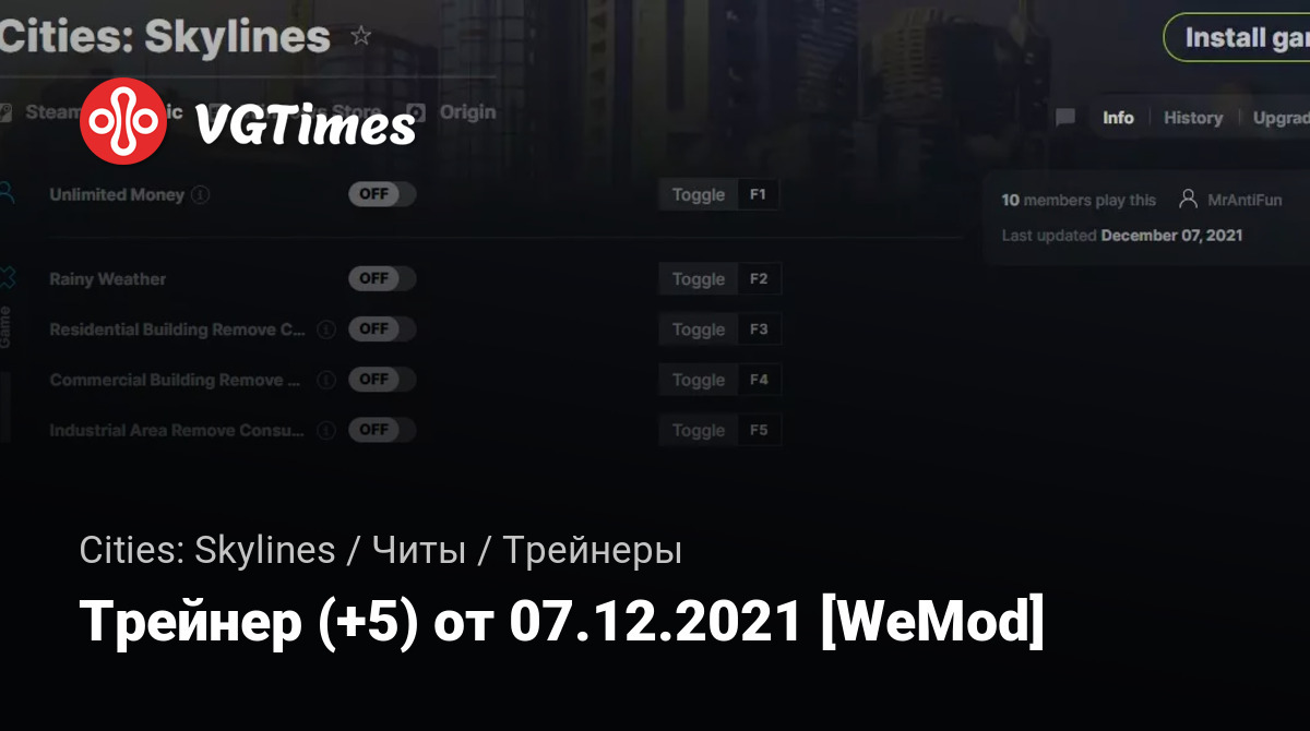 Для использования трейнера необходима установка системы WeMod (требуется онлайн подключение).