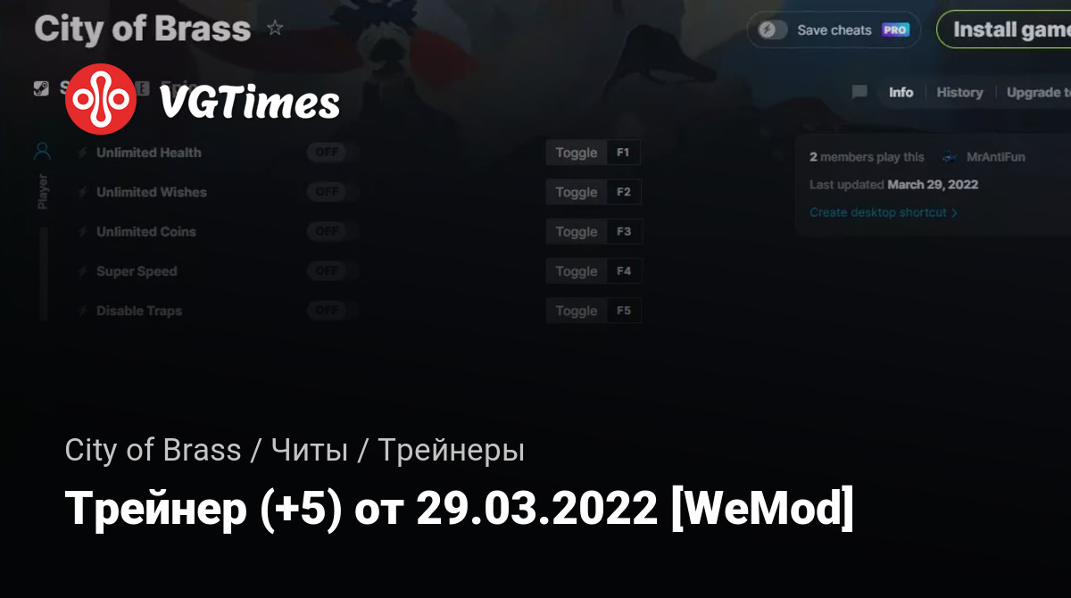 Для использования трейнера необходима установка системы WeMod (требуется онлайн подключение).