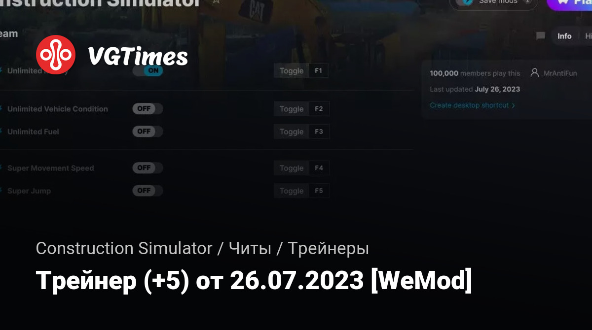 Для использования трейнера необходима установка системы WeMod (требуется онлайн подключение).