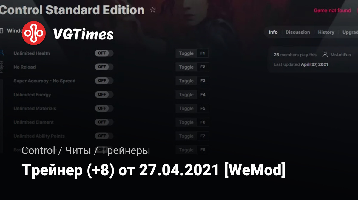 Для использования трейнера необходима установка системы WeMod (требуется онлайн подключение).