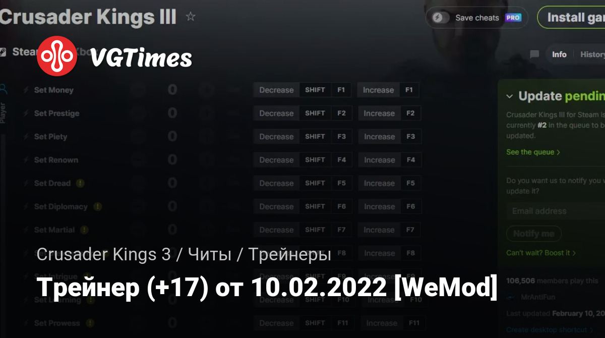Для использования трейнера необходима установка системы WeMod (требуется онлайн подключение).