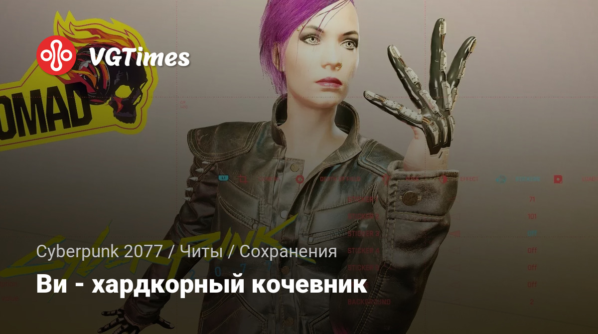 Сохранение игры, Ви женский персонаж-кочевник, готовый к хардкорному режиму. Максимальный уровень, максимальная репутация, полное дерево навыков, 100000000 наличных. Всего материалов для изготовления 900000. Выполнено всего 7 мин.