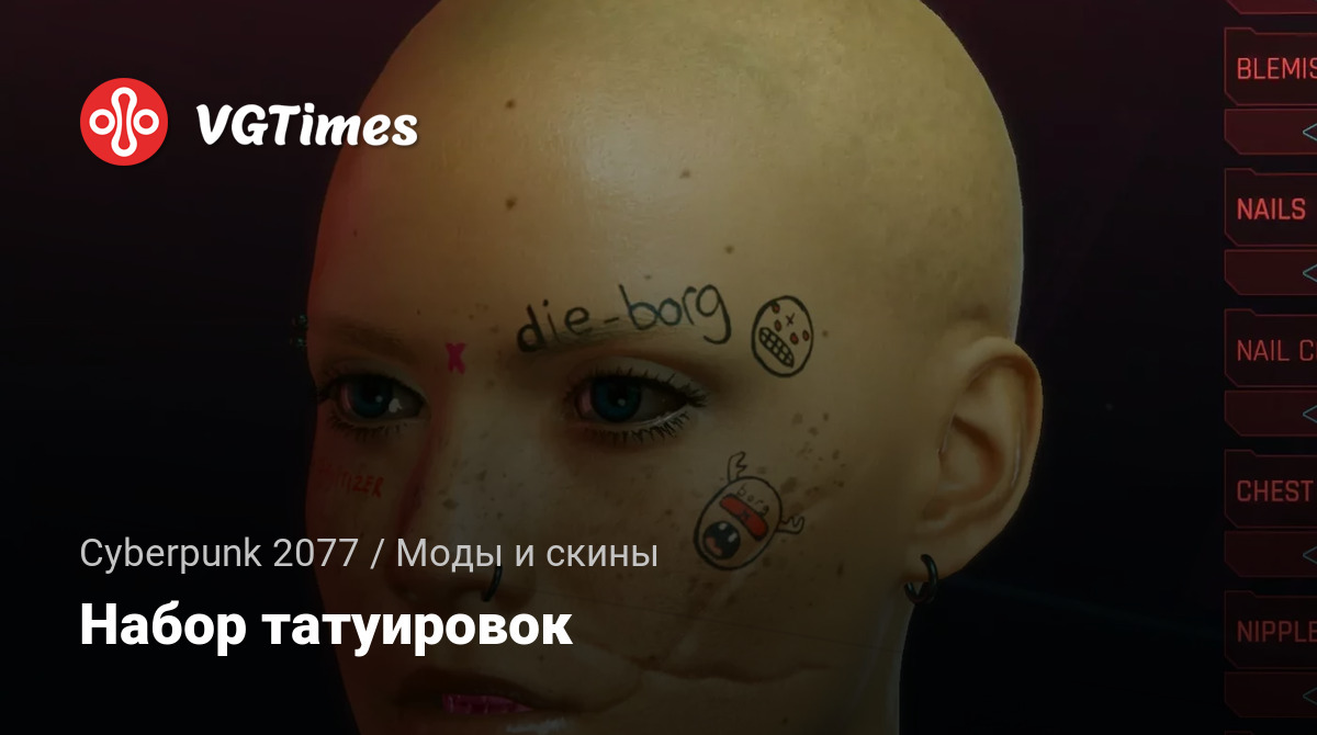 Изменяет первую татуировку на теле и последнюю татуировку на лице для мужчин и женщин. Установка по этому пути cyberpunk2077 / archive / pc / patch.
