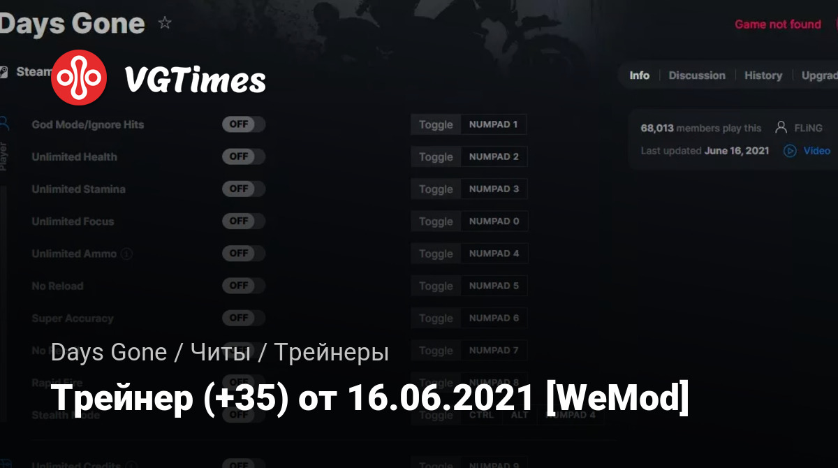 Для использования трейнера необходима установка системы WeMod (требуется онлайн подключение).