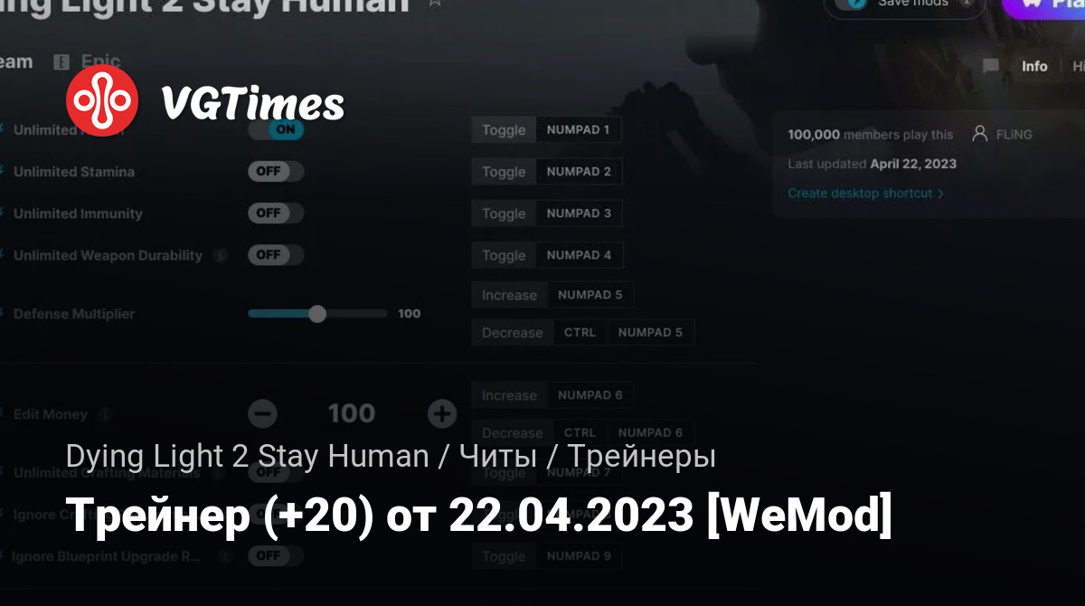 Для использования трейнера необходима установка системы WeMod (требуется онлайн подключение).
