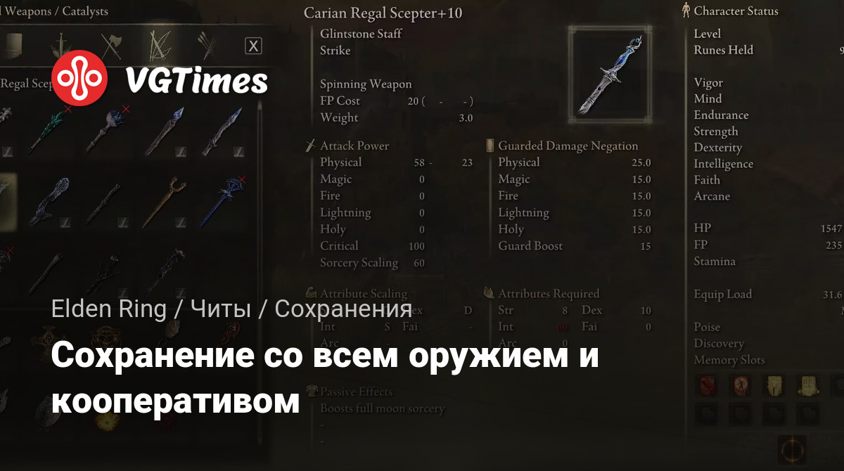 Это сохранение предназначено для использования в автономном режиме (с отключенным античитом) или с модом Seamless Co-op (который не использует оригинальные серверы игры). Использование этого сохранения в оригинальной игре в режиме онлайн приведет к тому, что вы будете забанены на серверах игры.