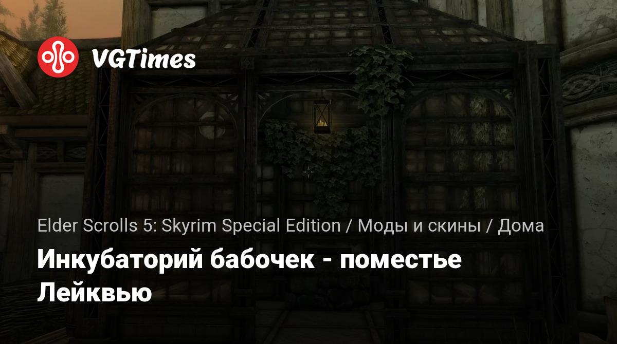 Добавляет инкубаторий бабочек в поместье Лейквью. Это теплица для разведения и работает аналогично рыбоводному хозяйству Hearthfire. Его можно использовать для разведения всех видов бабочек и светящихся жуков из Skyrim, Dawnguard и Saints & Seducers DLC. Список существ, которые могут быть размножены: