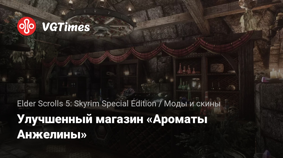 Дружественное к лору улучшение интерьера магазина «Ароматы Анжелины». Находится в Солитьюде, ESP был очищен с помощью функции автоматической очистки SSEEdit и помечен как ESL, поэтому он не засчитывается в предел ESP.