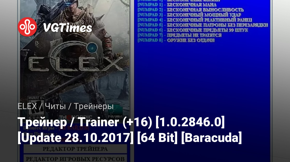 Jogos ELEX Arquivos Treinadores Трейнер / Trainer (+16) [1.0.2846.0] [Update 28.10.2017] [64 Bit] [Baracuda]