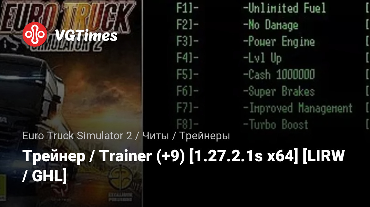 Jogos Euro Truck Simulator 2 Arquivos Treinadores Трейнер / Trainer (+9) [1.27.2.1s x64] [LIRW / GHL]
