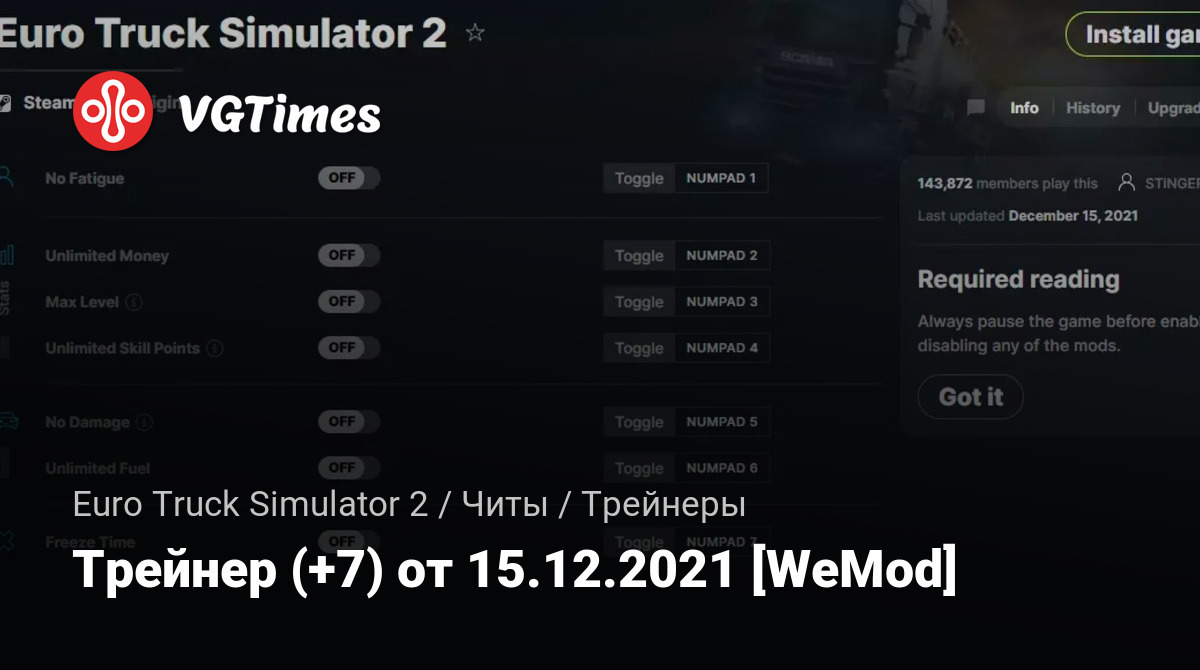 Для использования трейнера необходима установка системы WeMod (требуется онлайн подключение).