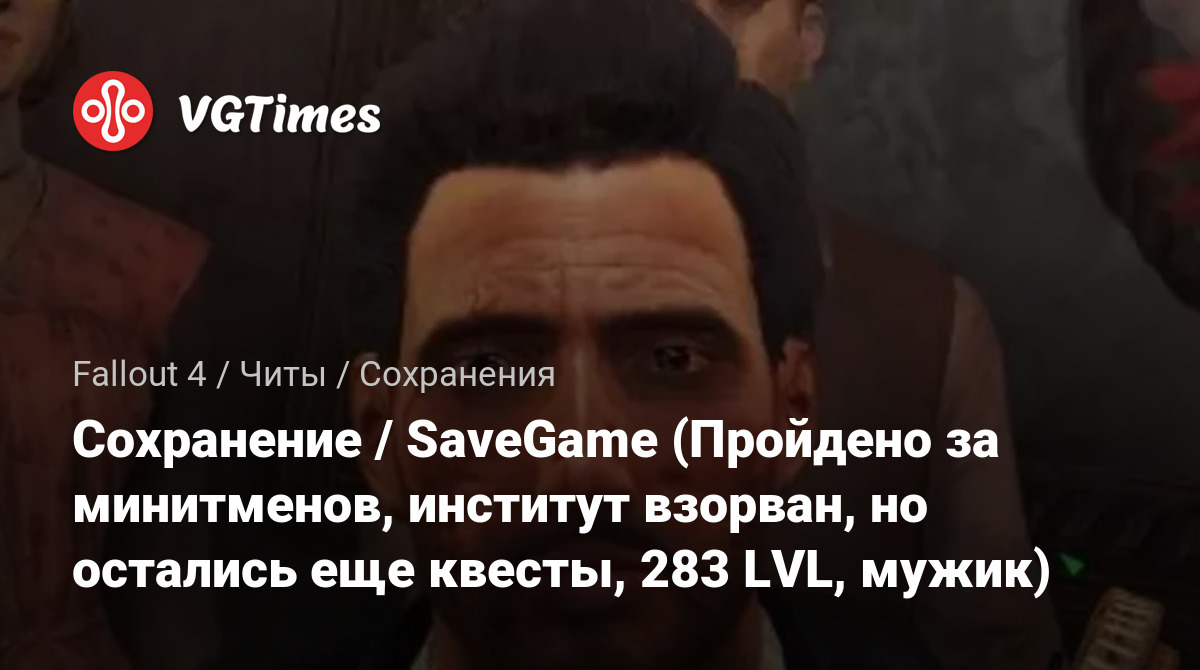 • Fallout 4 — Сохранение / SaveGame (Пройдено за минитменов, институт взорван, но остались еще квесты, 283 LVL, мужик)