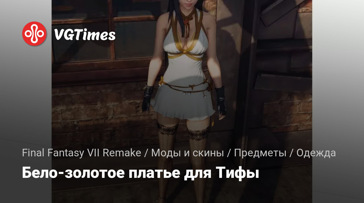 Фиолетовое платье Тифы сменилось на белое с золотыми деталями. Также вариант получить только платье или чулки. Чтобы заставить платье работать, вам сначала понадобится этот мод Purple Dress Tifa. Поместите pak-файл в папку ~mod. Если у вас его еще нет, вы можете создать его в папке Final Fantasy VII Remake Intergrade/End/Content/Paks.