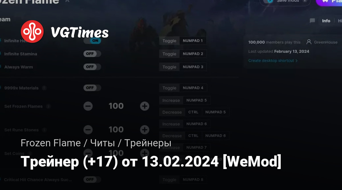 Для использования трейнера необходима установка системы WeMod (требуется онлайн подключение).