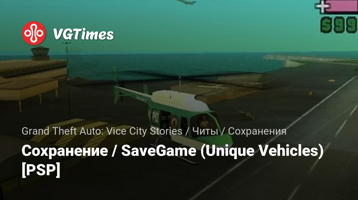 Jogos Grand Theft Auto: Vice City Stories Arquivos Salvamentos Сохранение / SaveGame (Unique Vehicles) [PSP]