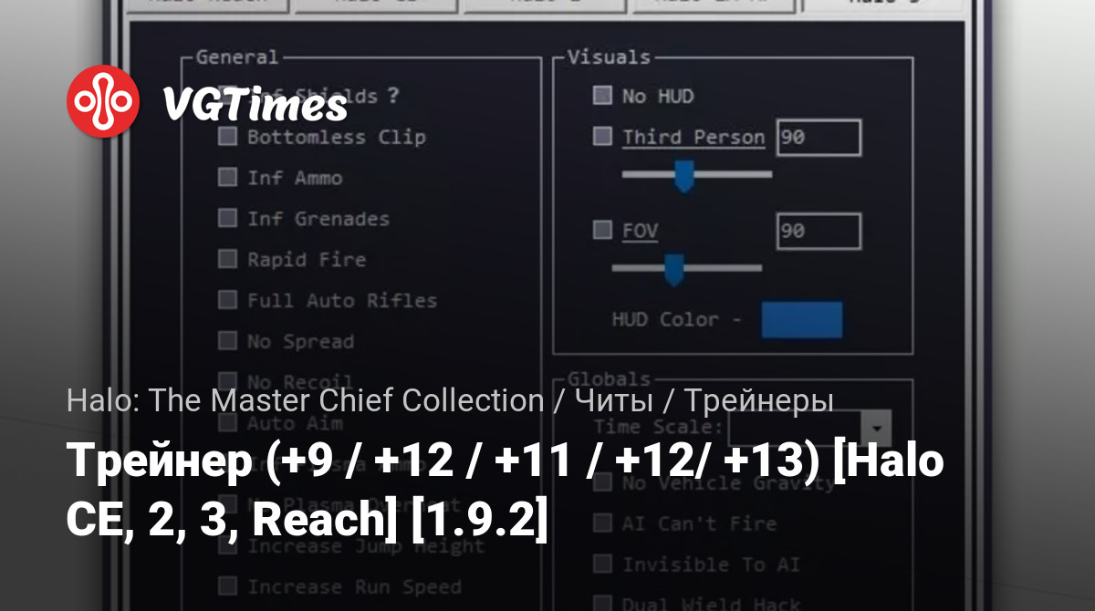 Трейнер (+9 / +12 / +11 / +12/ +13) [Halo CE, 2, 3, Reach] [1.9.2]