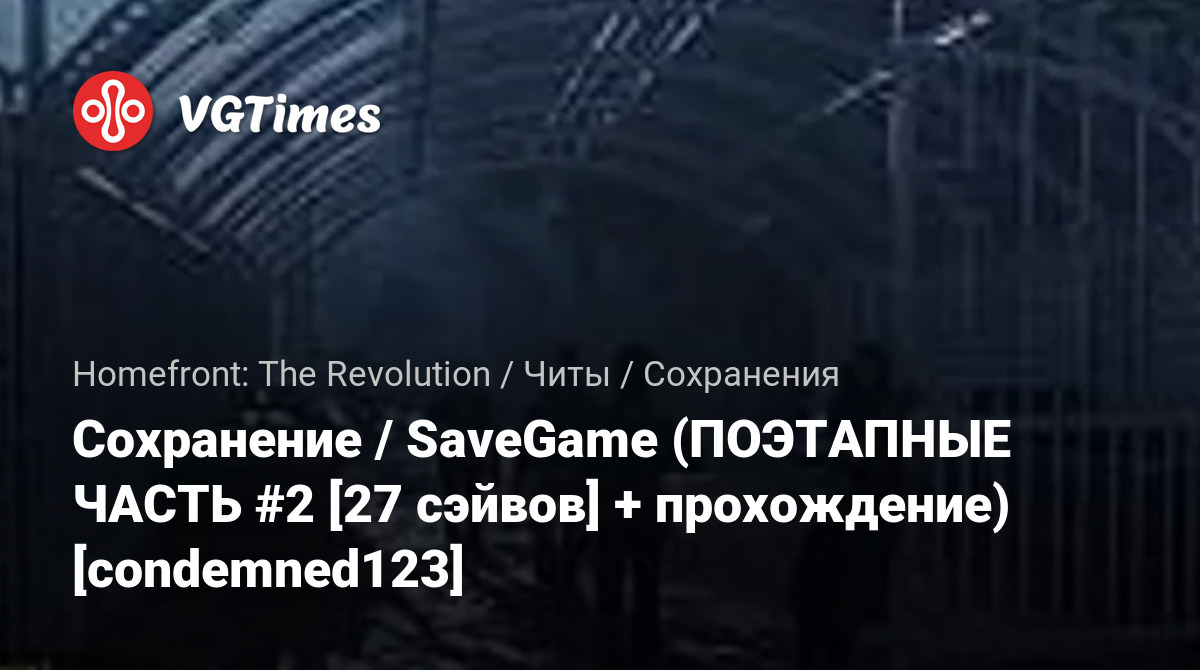 В архиве "2.Save.Homefront-2.condemned123.7z" находится вторая часть поэтапных сэйвов игры Homefront: The Revolution + прохождение.