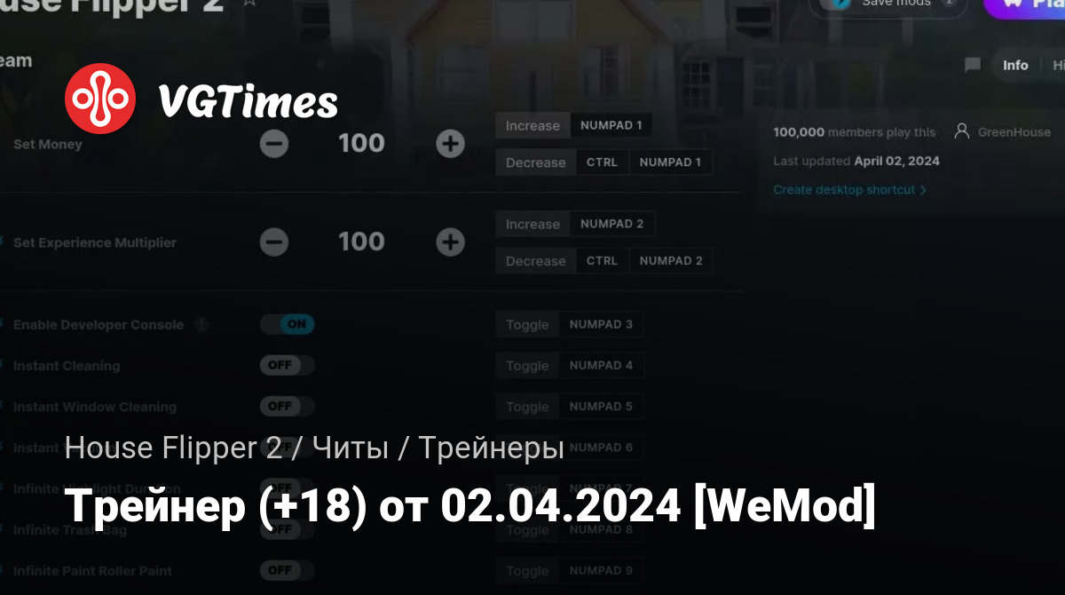 Трейнер (+18) от 02.04.2024 [WeMod]