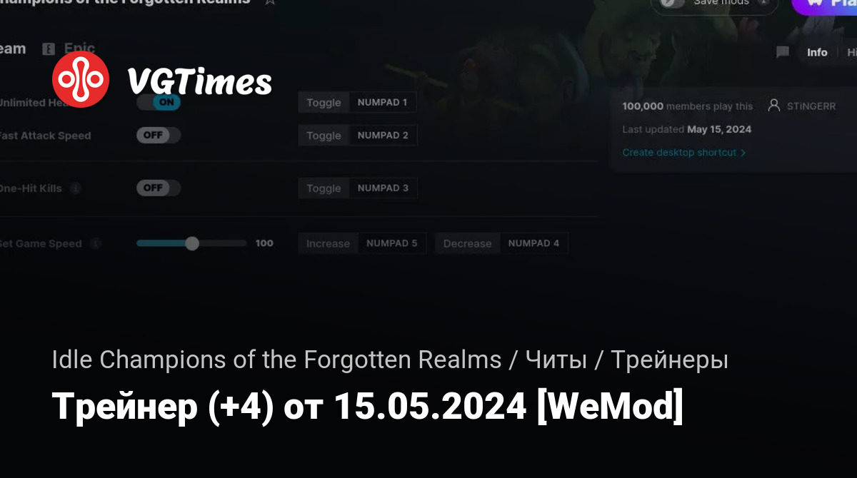 Jogos Idle Champions of the Forgotten Realms Arquivos Treinadores Трейнер (+4) от 15.05.2024 [WeMod]