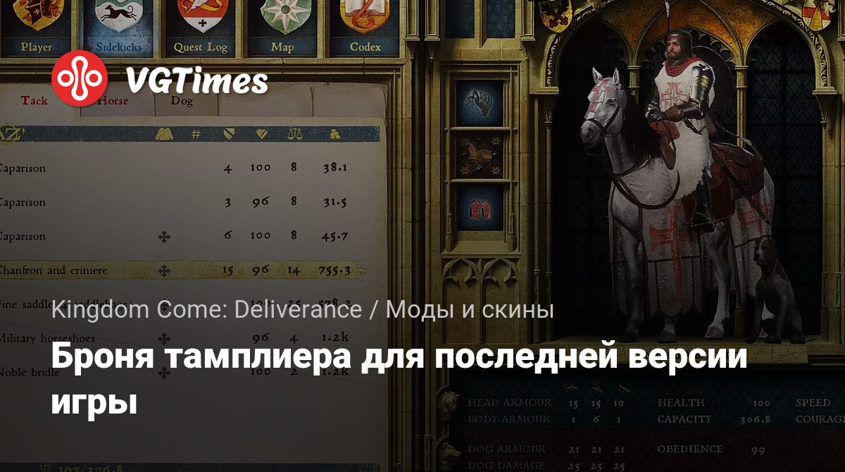 Мод для ролевой игры Kingdom Come: Deliverance добавляет новый комплект брони в стиле доспехов тамплиеров. Модификация адаптирована под версию 1.9.4.