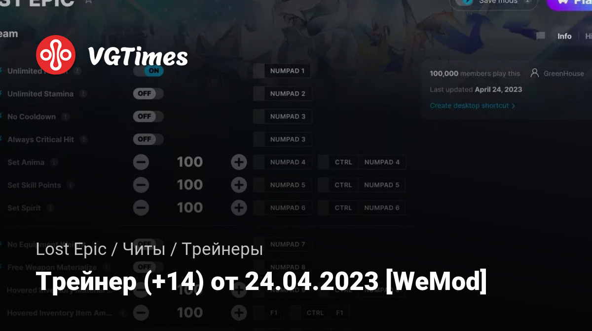 Трейнер (+14) от 24.04.2023 [WeMod]