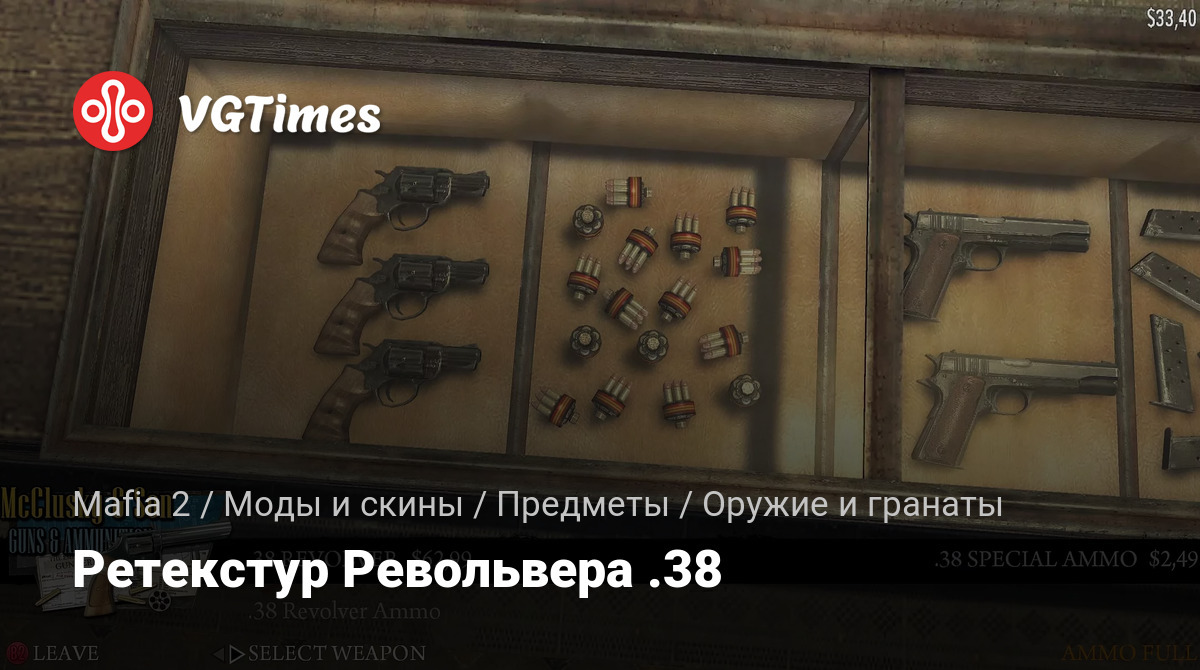 Новая модификация для оригинальной Mafia 2, которая также известна как Mafia 2 Classic, заменяет стандартную текстуру Револьвера .38 на новую, а кроме этого изменяет его цвет на черный.