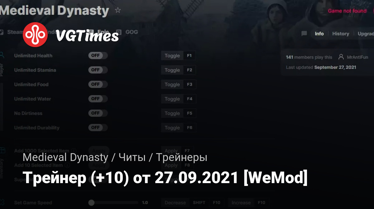 Трейнер (+10) от 27.09.2021 [WeMod]
