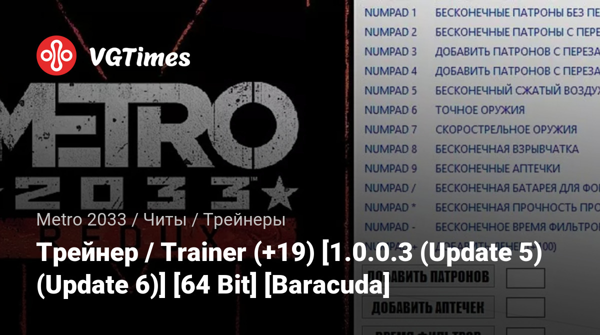 Трейнер / Trainer (+19) [1.0.0.3 (Update 5) (Update 6)] [64 Bit] [Baracuda]