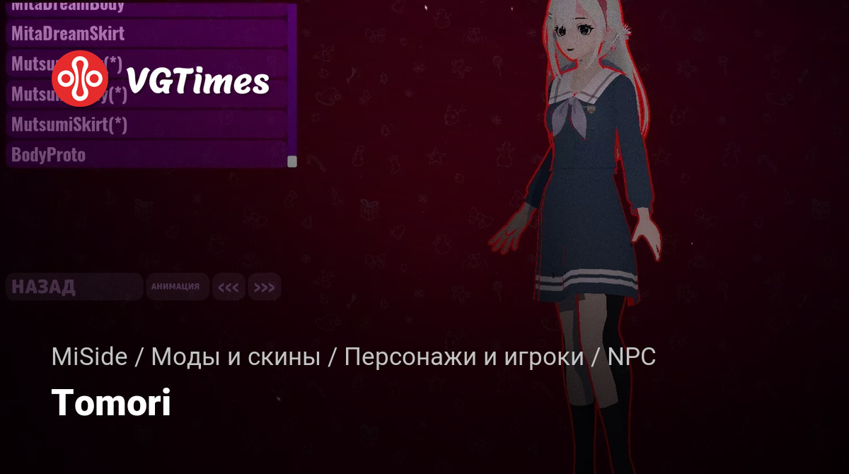 Мутсуми заменяет оригинальный скин Миты. Для полного включения рекомендуется включить все 3 элемента, показанные на скрине (волосы опционально). Аддон для Universal AsSet Loader. Addons_config модифицирован специально для адаптации с модом на "Расширенную кастомизацию".