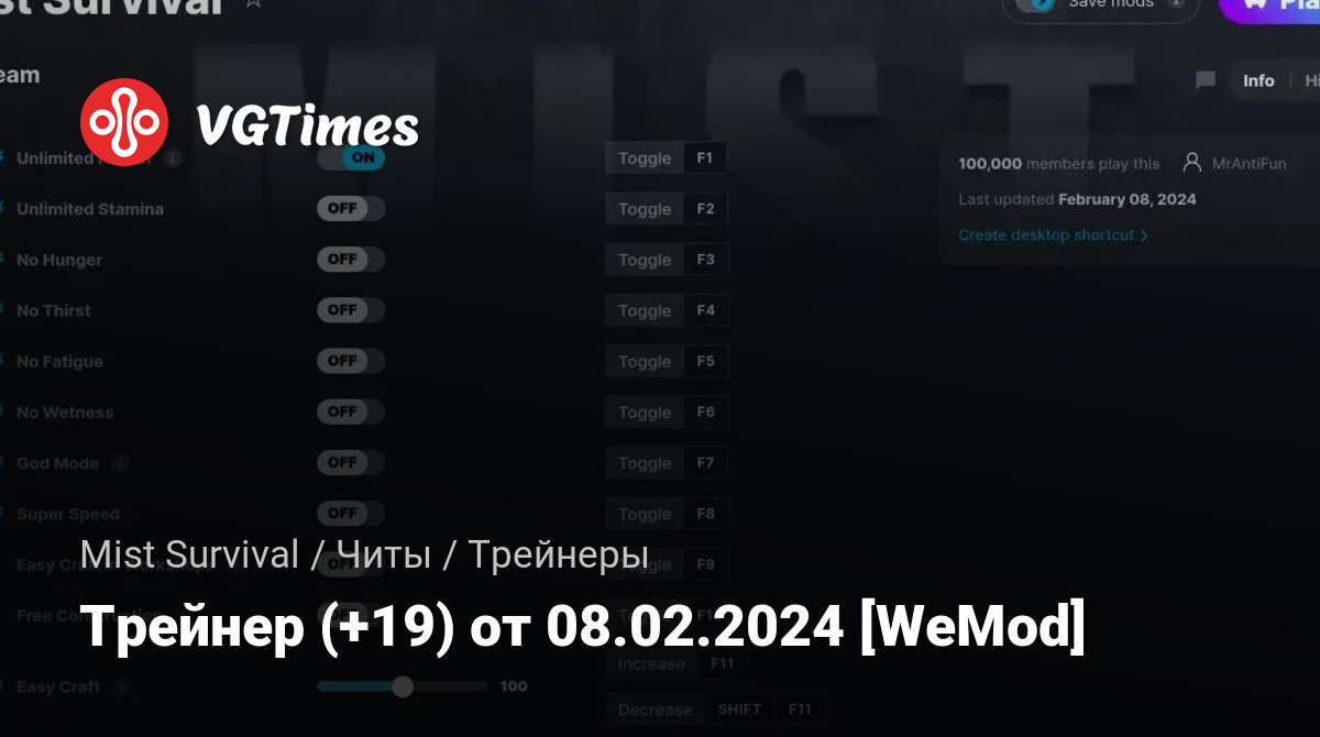 Для использования трейнера необходима установка системы WeMod (требуется онлайн подключение).