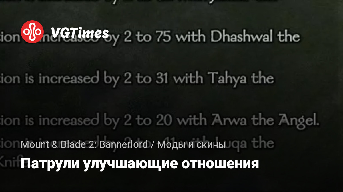 Если компаньон патрулирует вокруг вашего поселения, это увеличивает связь с известными людьми в этом поселении. Вы можете приказать своему спутнику сосредоточиться на патрулировании. Мод не сохраняет никаких данных. Безопасно для установки и удаления в середине игры. Отношение будет увеличиваться на 1 (или 2, в зависимости от ваших льгот) каждые 24 часа патрулирования.